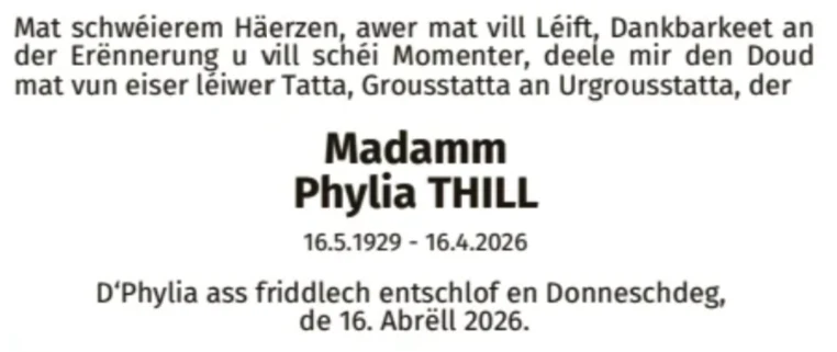 * 16.05.1929 — † 16.04.2026