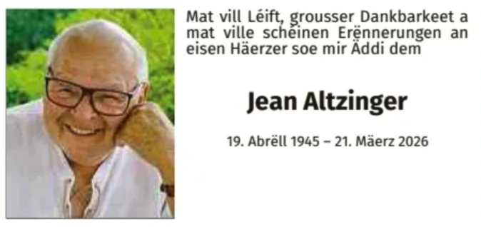 „Léiwe Jang, d'Noriicht vun dengem Doud huet mëch déif getraff. Du wars e Mann mat engem groussen Häerz. Du hues op all Foto gelaacht, an esou wäert ëch mëch un dëch erënneren.