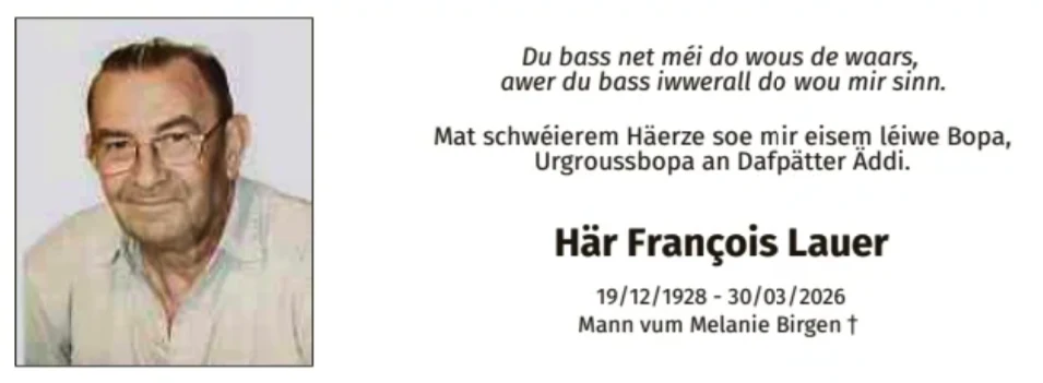 * 19.12.1928 — † 30.03.2026